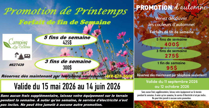 ** 7e nuit GRATUITE, à la location de 6 nuits consécutives de camping. **